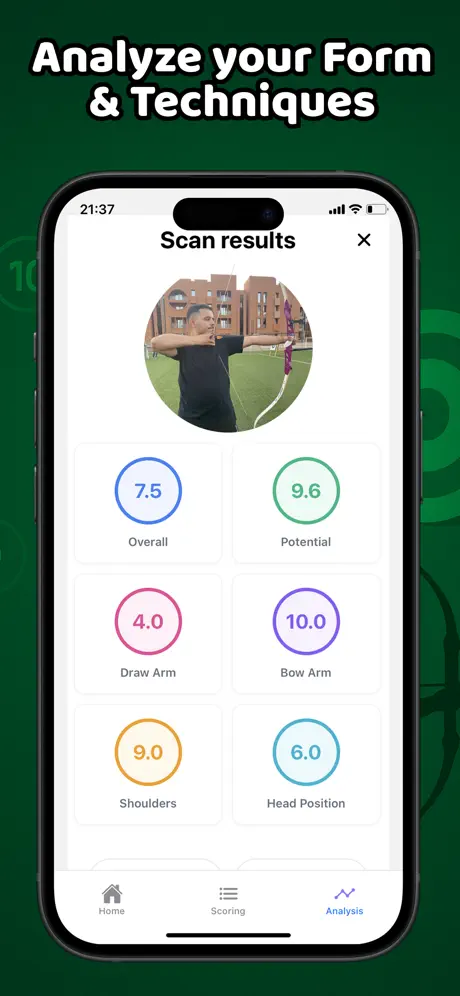 動作分解與分析 應用會將你的射箭動作分解為多個關鍵階段(如站位、舉弓、瞄準、放箭等),並對每個階段提供詳細的評估和改進建議。